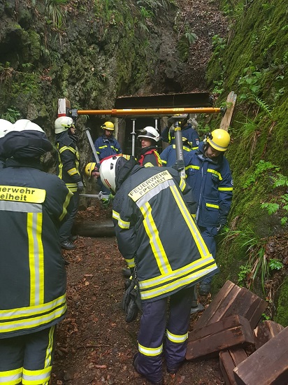 Am 10.05.2019 stand Bergrettung auf dem Dienstplan. Hierzu fuhren wir nach Lerbach. Dort wurden 4 Personen in einem Schacht als vermisst gemeldet als diese Schutz vor einem Gewitter suchten. Unsere Aufgabe zusammen mit dem THW und einiger Kameraden aus Lauterberg bestand darin, einen Einsturz gefährdeten Nebenschacht der zur Luftzufuhr für den Hauptschacht dient, zu stabilisieren und zu stützen. Parallel durchsuchten einige Trupps aus Osterode und Lerbach den Hauptschacht und retteten die vermissten Personen. Anschließend gab es noch eine Nachbesprechung und man traf sich im Feuerwehrhaus Lerbach auf ein Getränk.